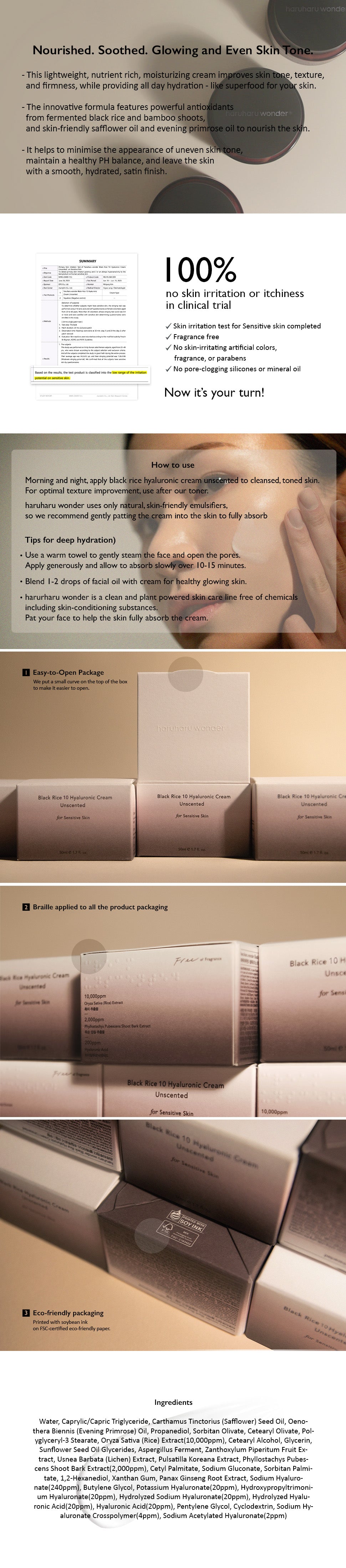 [haruharuwonder] Black Rice 10 Hyaluronic Cream 50ml (Unscented)
