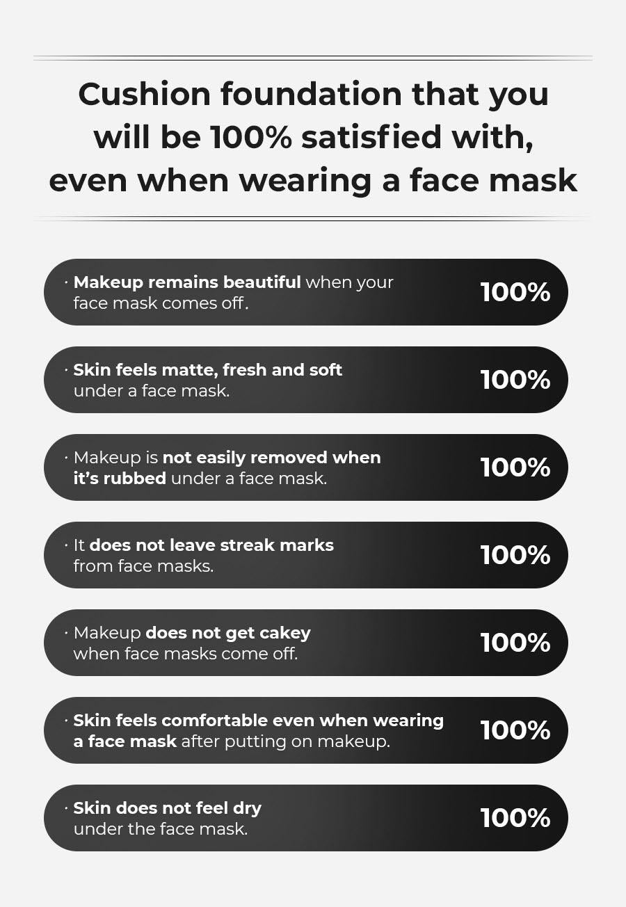 Skin fit coverage of LUXURY NO.1* Cushion Foundation Improved new BLACK CUSHION FOUNDATION with more comforting soft satin finish *Beaute Research’s report on the sales amount of prestige cushion category from Korean department stores, boutiques and e-commerce channels between 2021 and 2023 A thin layer of 24-hour lasting lightweight blurry coverage Skin Fit Cover technology allows a weightlessly thin coverage that seamlessly blends in with the skin without clumping over pores and imperfections and ensures that makeup stays looking clean for up to 24 hours 24-hour lasting skin imperfections cover 24-hour lasting pore cover 24-hour lasting skin texture cover + Make-up resistant effect Soft satin look that’s feeling like a second skin, not heavy and yet lasting for long hours Refining Pigment, featuring clear quality and high purity, creates a bright and clean look from the very first touch and keeps it lasting for a long time Comforting and non-drying texture with 24 hours of hydration The skincare base infused with Flower Extract makes the skin more beautiful with each application 24-hour lasting hydration Improvement in the skin’s oil and moisture levels after two weeks of use