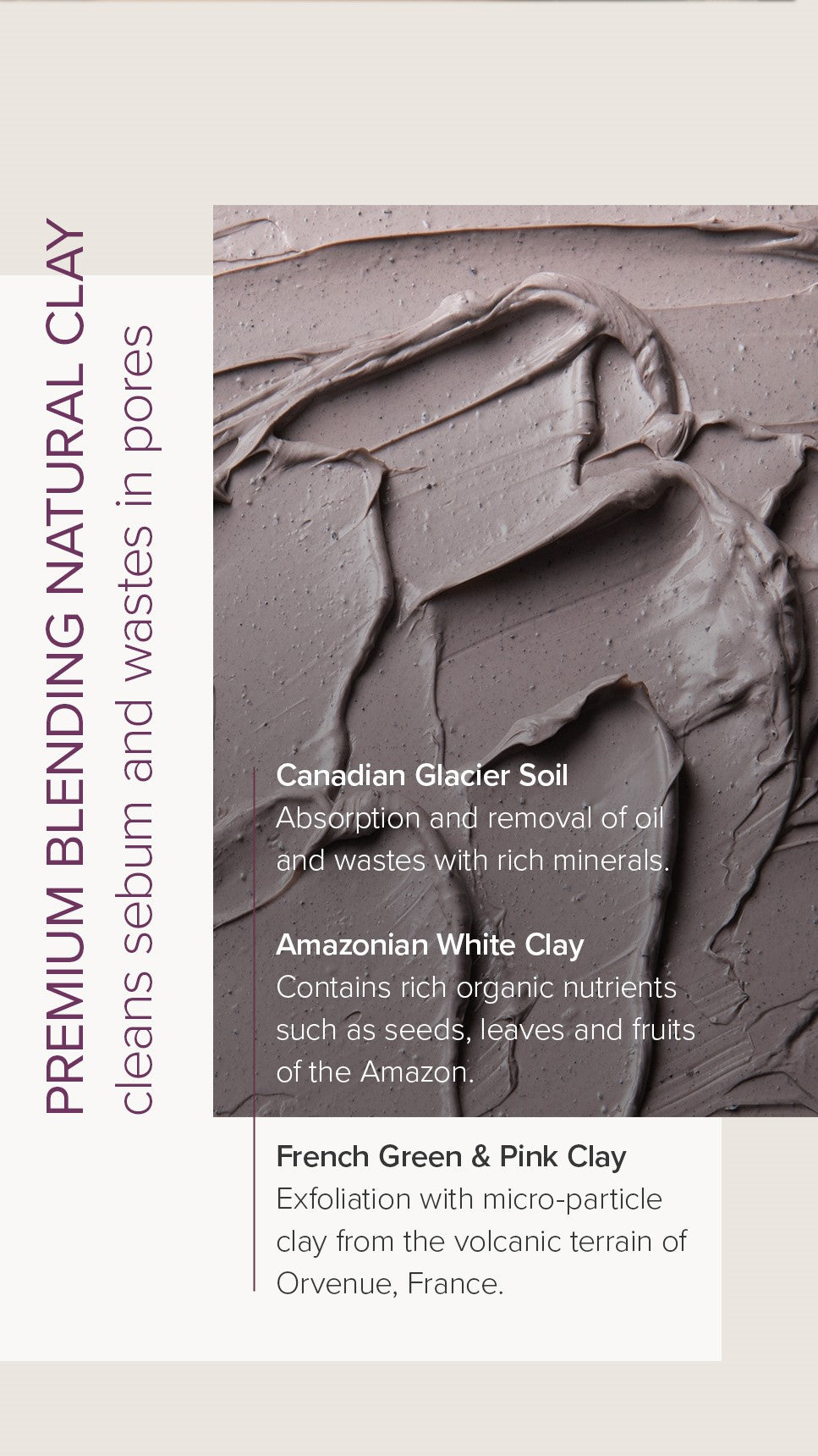 Blackberry powder and almond peel powder gently exfoliate to make the skin soft and radiant like baby skin immediately after use, while delivering rich nutrition as it is. Contains kelp extract, nasturtium leaf extract, and black tea extract to help make the skin soft and supple. Allantoin, hyaluronic acid, and other ingredients that are excellent for skin moisturizing are abundantly contained, helping to maintain soft and moist skin. Canadian Glacier Soil, Amazon White Clay, and French Green Pink Clay are blended to gently absorb impurities and oil in the pores that are not reached by normal cleansing, leaving the skin clean and smooth. The creamy soft texture closely adheres to the curves of the skin to effectively deliver moisture and nutrients into the skin. "Vegan certification completed All ingredients EWG green grade (excluding fragrance) Skin irritation test completed 16FREE Hazardous ingredients, Cruelty free, Eco-friendly packaging printed with soybean oil ink"