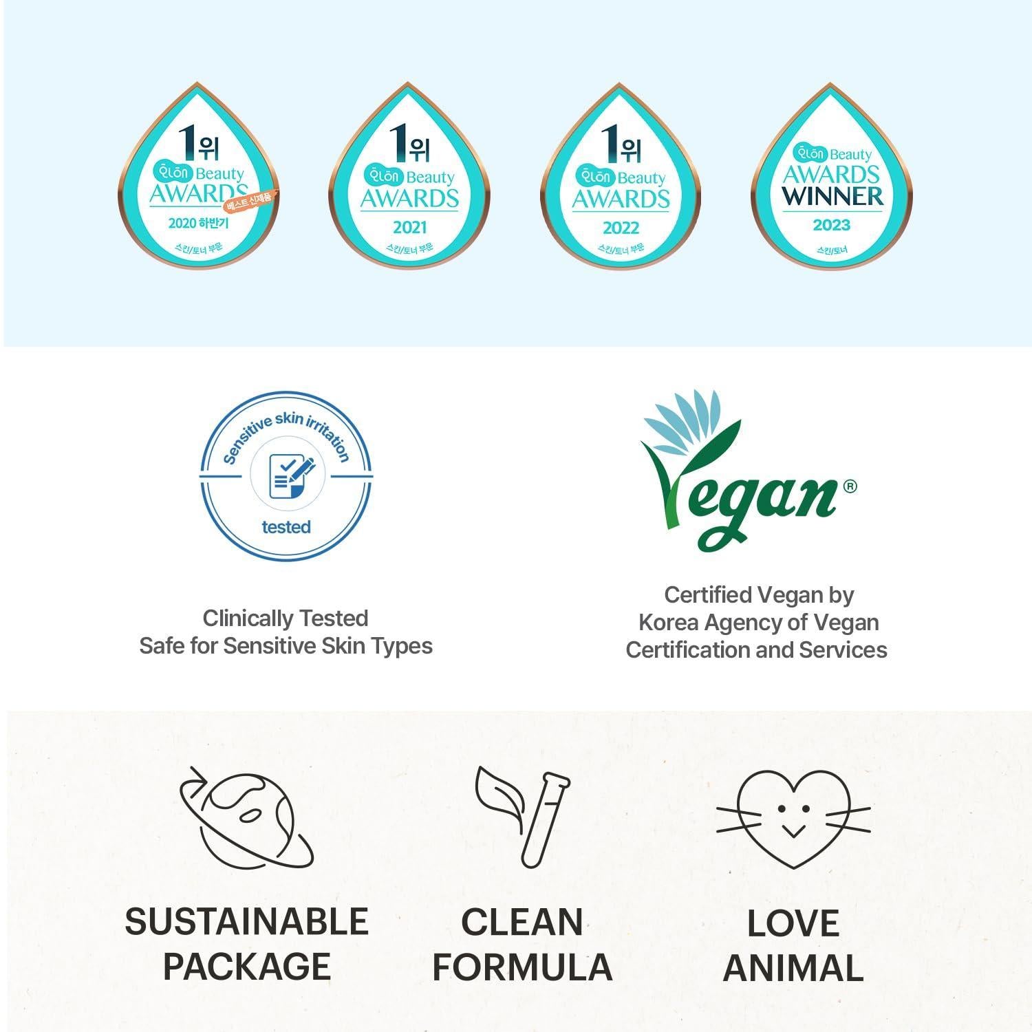 Hypoallergenic toner that provides refreshing hydration and refines skin texture. 5D-Complex Hyaluronic Acid instanly boosts and conditions skin with ample moisture, leaving a dewy, smooth finish. Allantoin helps exfoliate skin mildly while hydrating and soothing skin with comforts. Watery texture with natural pastel blue color from Malachite Extract promotes rapid absorption.